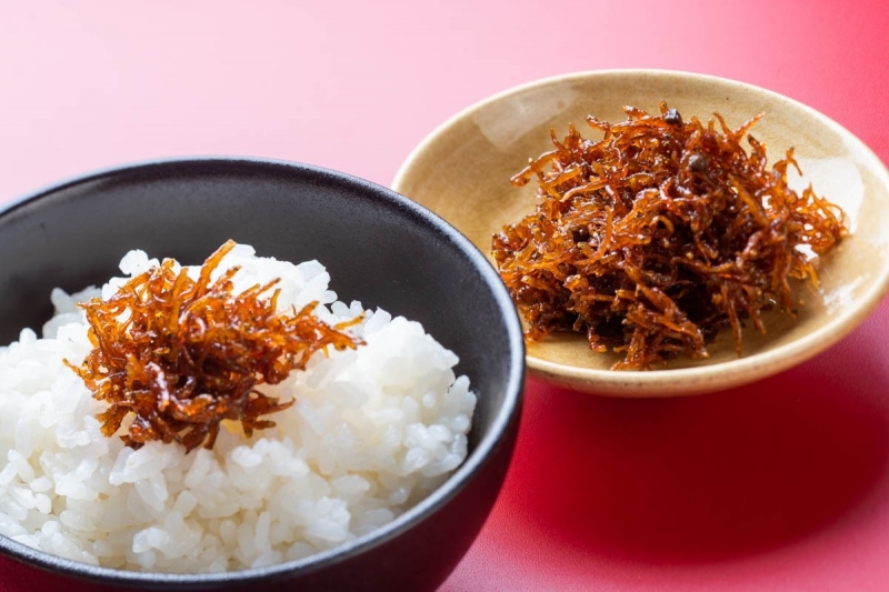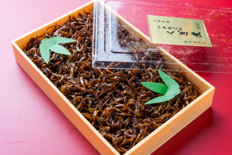 全国に多くのファンを持つ大ヒット商品「わかめ煮」で知られる味よし。アメ色に輝く「いかなごくぎ煮」は、イカナゴを醤油や砂糖(ざらめ)、高知産の生姜で甘辛く炊き上げた逸品です。