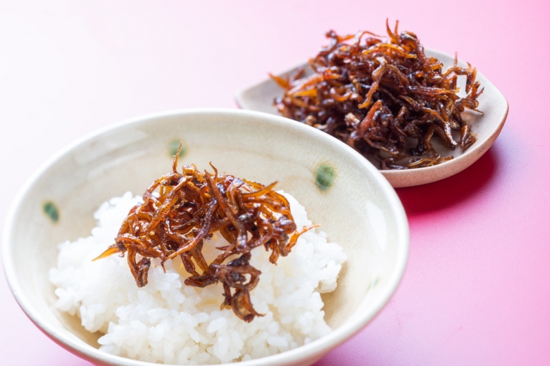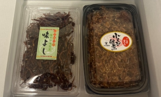 ごはんのお供にピッタリのいかなごくぎ煮と小えび佃煮のセットです。
