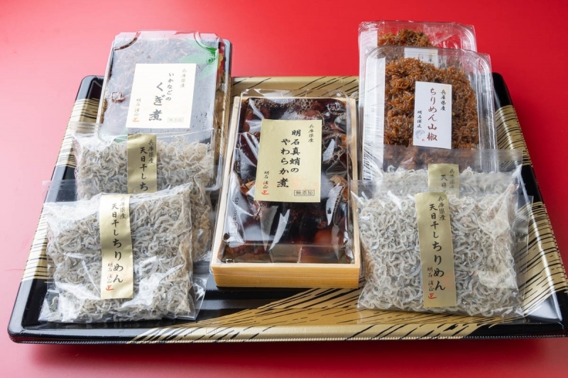 自然な甘み・潮の香が味わえるちりめんや、いかなごのくぎ煮。明石産の真蛸の旨味を存分に味わえる柔らか煮など、海の恵みをたっぷり詰め合わせています。明石の豊かな海の恵みを、心ゆくまでお楽しみください。